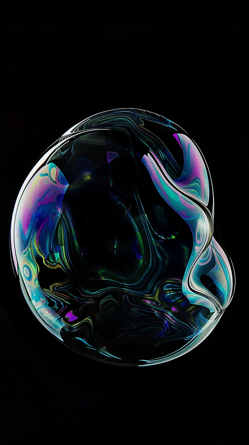 Using KREA video short blend videos of a full circle soapy bubble on black background to an odd shaped soapy bubble.